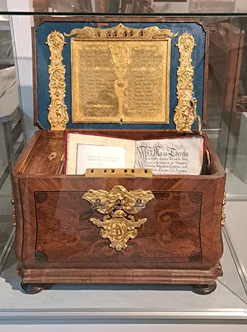 Ergänzend liegt ein Schutzpatent mit der Unterschrift von Kaiserin Maria Theresia bei.