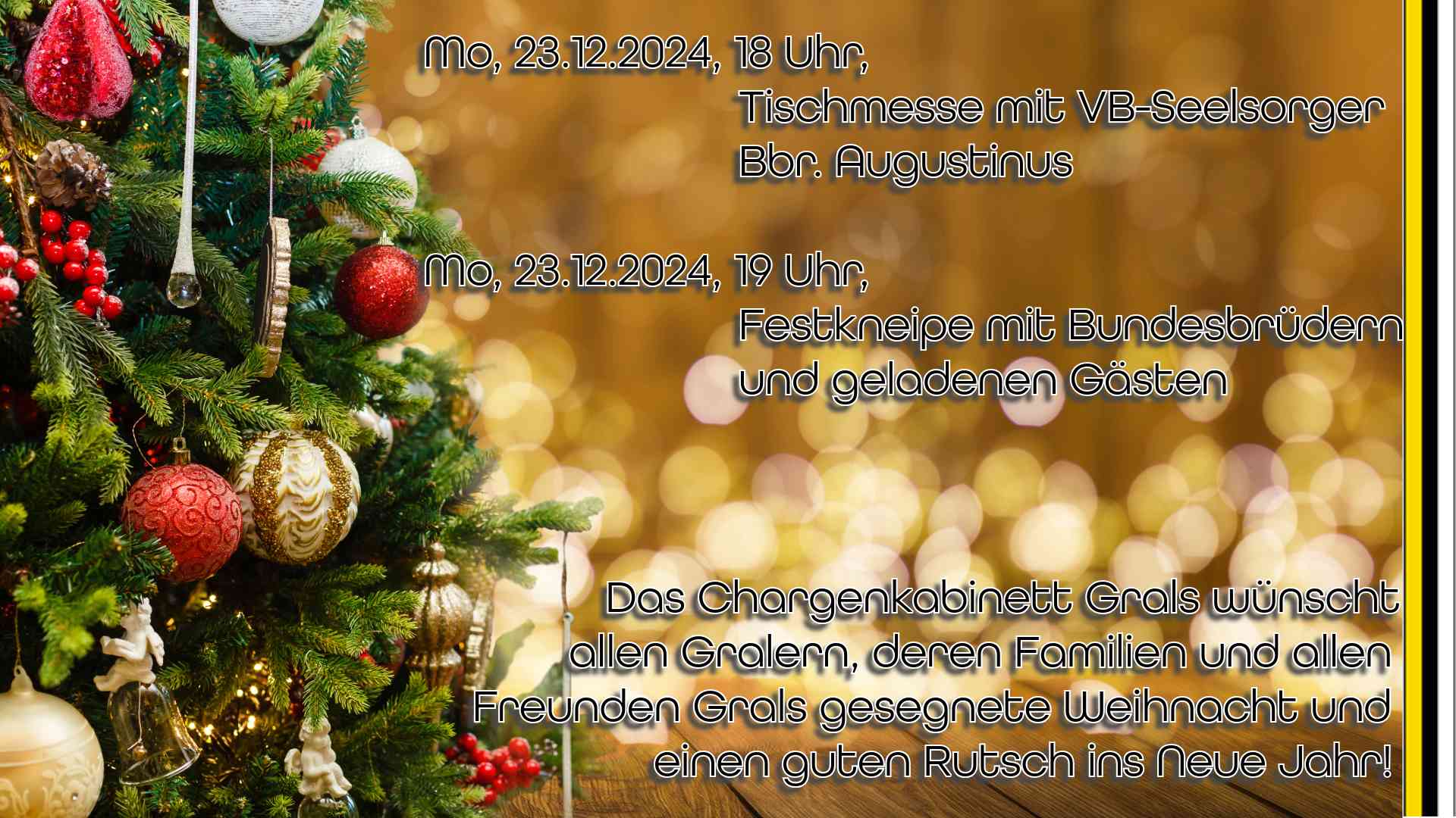 Neben allen Bundesbrüdern sind auch heuer wieder die Witwen unserer verstorbenen Bundesbrüder persönlich geladene Gäste auf unserer Tischmesse und der anschließenden Weihnachts-Festkneipe!