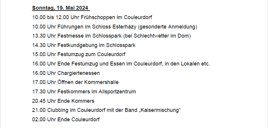 Das Programm des Sonntags: